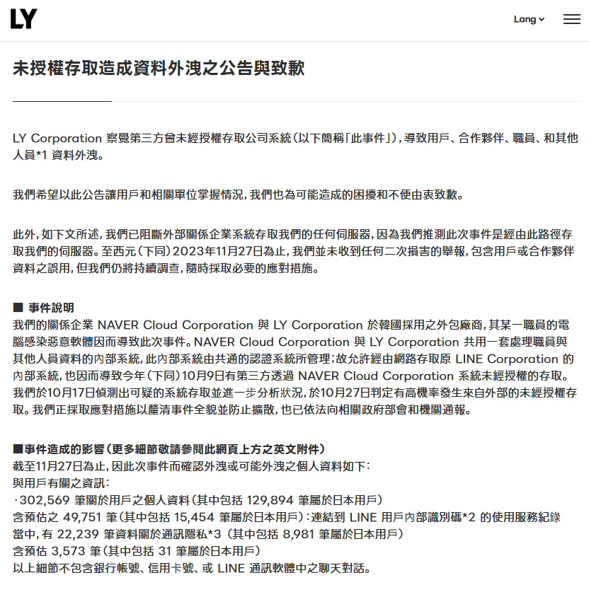 日本科技巨头 LY 遭网络攻击,旗下通讯软件 LINE 超 40 万条个人信息面临泄露风险